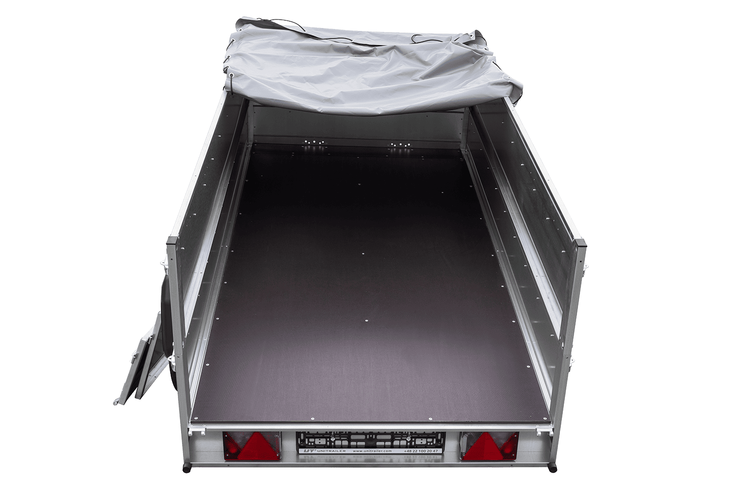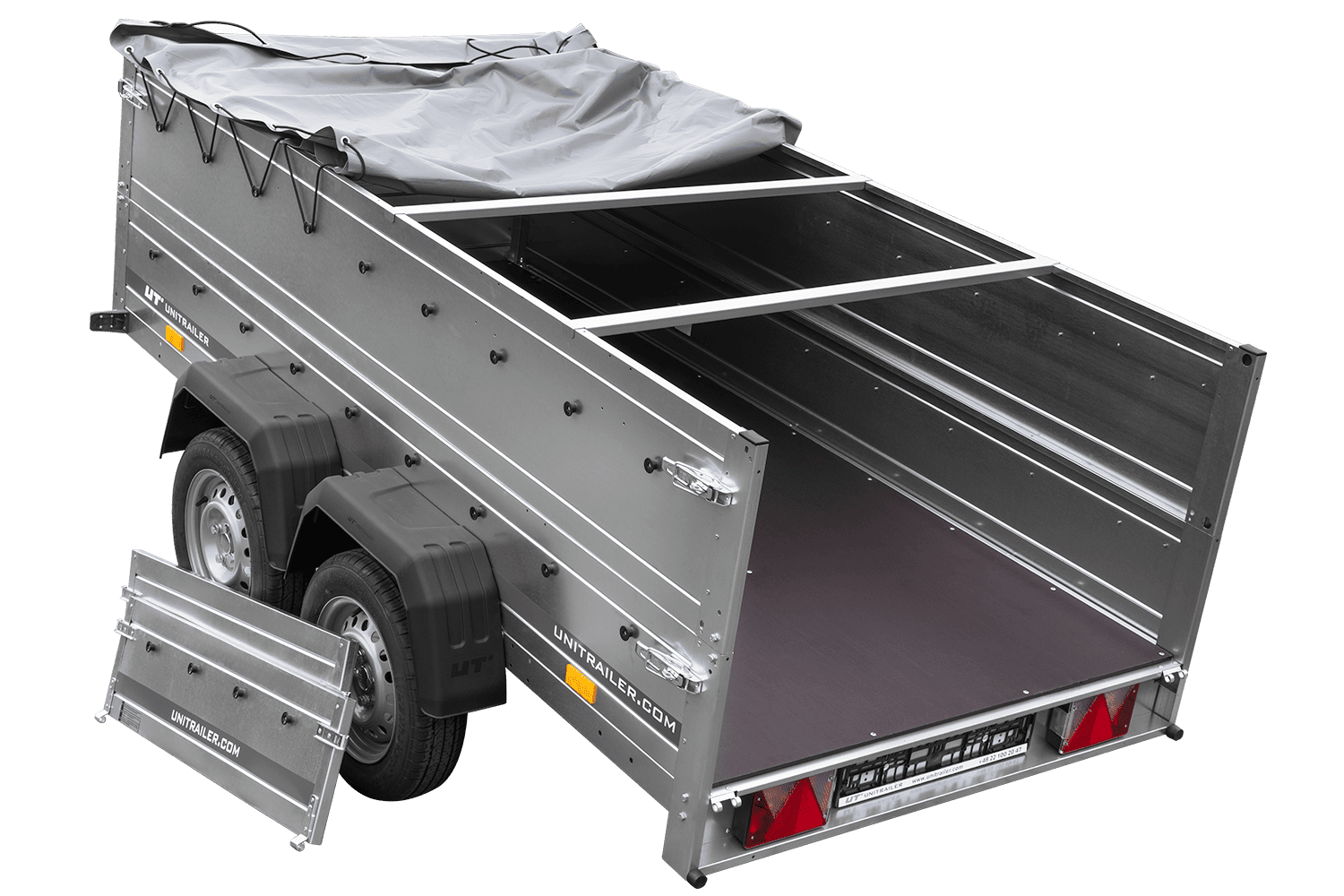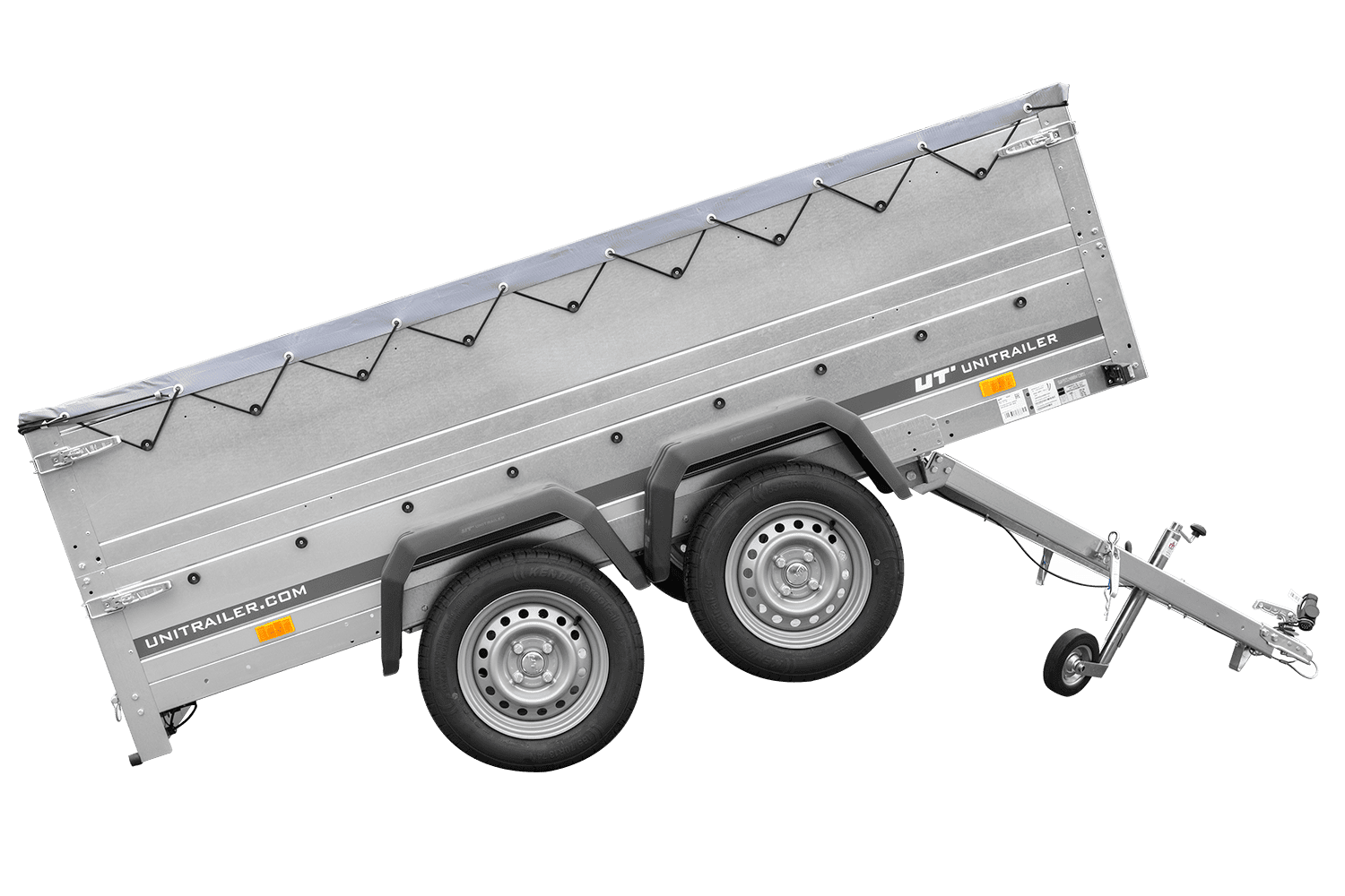 Equipado con una lona azul resistente, este remolque protege eficazmente la mercancía contra la lluvia, el polvo y otros factores ambientales, garantizando que la carga llegue en perfectas condiciones. Es ideal para el transporte de productos sensibles, herramientas, equipos o mercancías que requieren protección adicional.