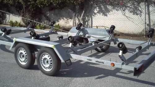 Con una capacidad de carga de 1200 kg, este remolque combina resistencia y seguridad, siendo perfectamente adaptado para uso recreativo o profesional. Su sistema de soporte facilita el posicionamiento del barco y mejora la maniobrabilidad durante las operaciones de carga y descarga.